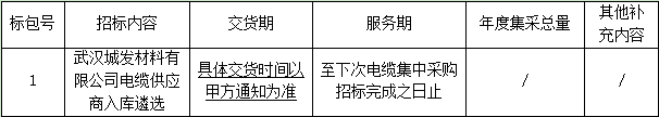 1.1項目名稱:武漢城發(fā)材料有限公司電纜供應(yīng)商入庫遴選
